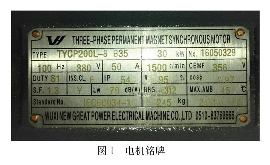 我們選用的是30KW的FC360變頻器,驅(qū)動的是30KW的三相交流永磁同步電機,電機磁極數(shù)為8極,額定頻率為100Hz,具體電機參數(shù)如圖1銘牌所示。FC360采用VVC+控制原理,配置過程閉環(huán)模式后,試運行十分流暢,但停車后會有一點點慣性反轉(zhuǎn)現(xiàn)象。后來發(fā)現(xiàn)是由于空壓機本身的機械慣性導致的,為了克服慣性問題,我們在變頻器上加了一點點直流制動,效果馬上就體現(xiàn)出來了,能做到說走就走,說停就停的效果。值得注意的是,變頻器對同步電機的電機參數(shù)比較敏感,所以事先跟電機廠家確定好電機的定子阻抗和d軸電感這兩個參數(shù),效果會更佳。