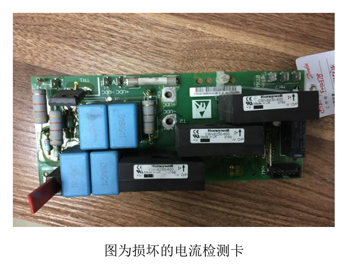案例一:客戶反映有一臺 VLT6000 75KW 的變頻器出現報警并跳閘,報警不能復位,變頻器不能運行。我們到現場首先檢查主電路是否正常,確認正常無誤后再上電,然后查看變頻器報警記錄,發現有AL14報警,屬于接地故障報警。出現接地故障報警一般有兩個可能,要不就是電機或者變頻器真的出現接地系統故障,要不就是變頻器電流檢測電路故障導致的。于是我們首先排查外部原因,查看變頻器和電機的接地線是否連接正常,用搖表給電機和變頻器打絕緣查看是否達到絕緣要求,查看電機電纜線是否過長等等。經仔細檢查,沒發現外部電路出現異常,那就基本可以確定是本身變頻器的電流檢測電路出現故障了。我們把變頻器的電流檢測卡更換后,AL14報警復位消除,變頻器恢復正常運行。