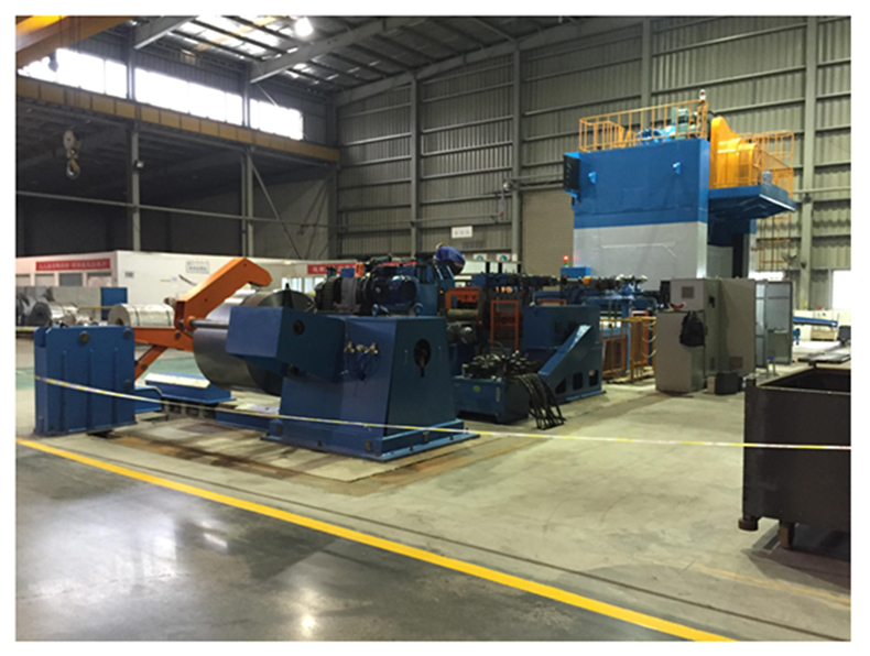 廣州市漢達五金機械有限公司的鋼板下料生產線,用于將整卷鋼材通過上料、開卷、入料、整平、NC 定尺送料、廢料處理、沖壓等一序列工序,加工成工廠所需的鋼板尺寸和形狀。