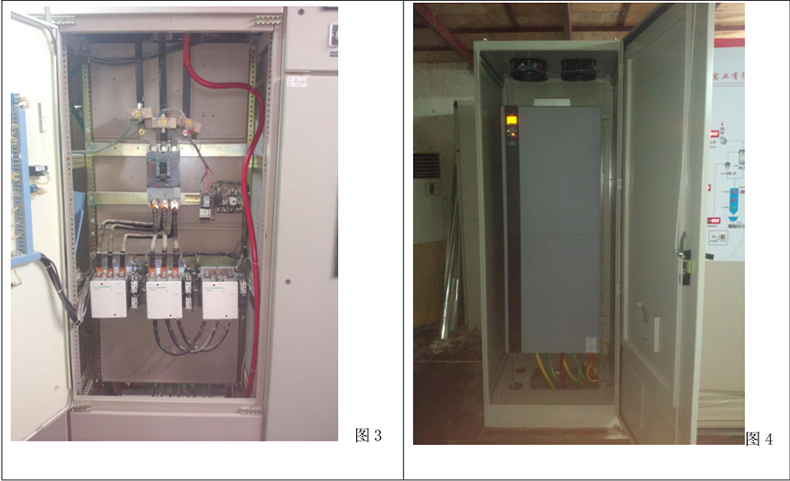 根據(jù)實(shí)際情況及以上的分析,電機(jī)采用丹佛斯 FC302 系列變頻器(額定功率 315KW,額定電流 600A)控制,變頻器前端加裝一個(gè)保護(hù)斷路器(額定電流 630A),因生產(chǎn)車間環(huán)境很惡劣,需為變頻器配備電柜(如上圖 4),放置于中央控制室。