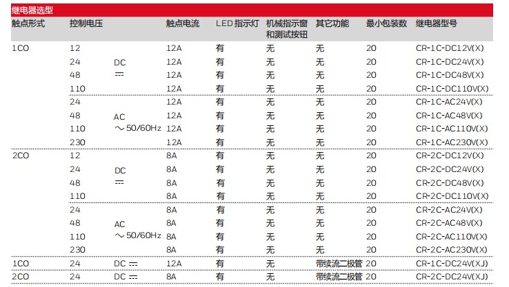 CR...(X)繼電器除了在保留CR繼電器體積小、容量大的特點以外,還進一步擴充了一組觸點型號的產品(包括配套使用的底座和附件),使產品線更加豐富和全面。