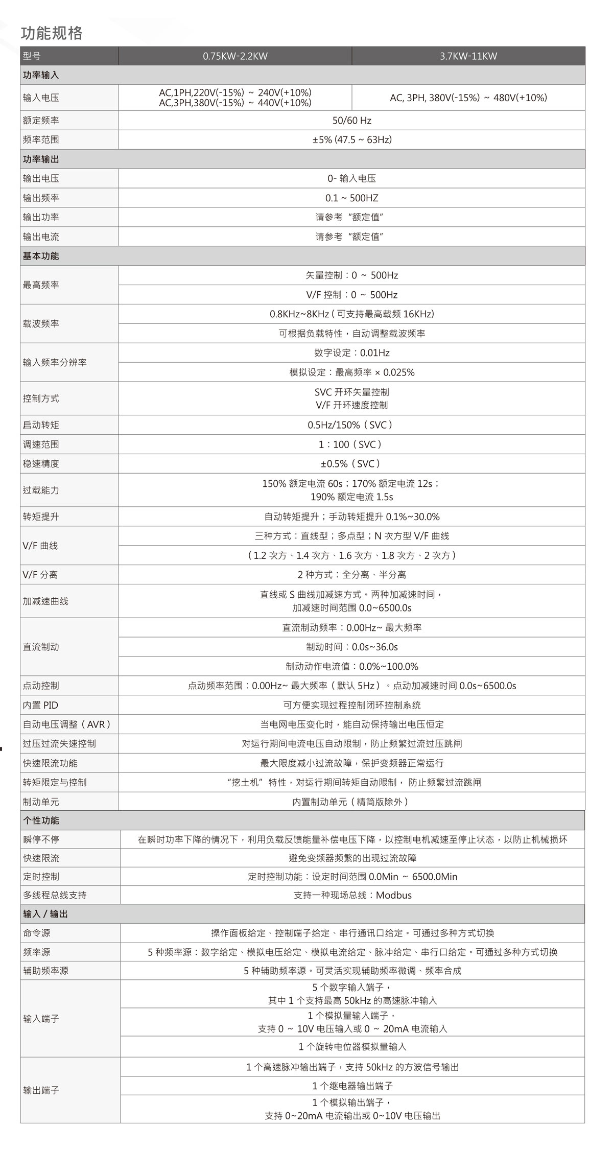 功率范圍: 0.75-11KW